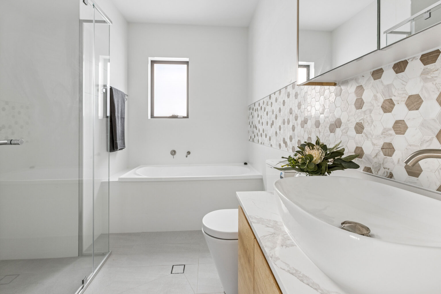 -2.5 contemporary bathrooms, including a convenient powder room